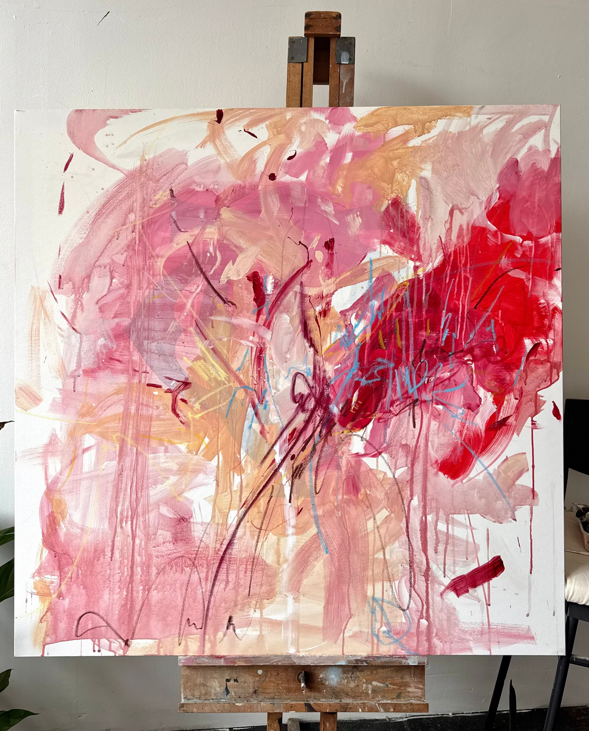 The colours and brush strokes give off a chaotic yet romantic feel which reminds me of the feeling of falling in love for the first time. It hold so many meanings which always comes to me once a piece is complete.
