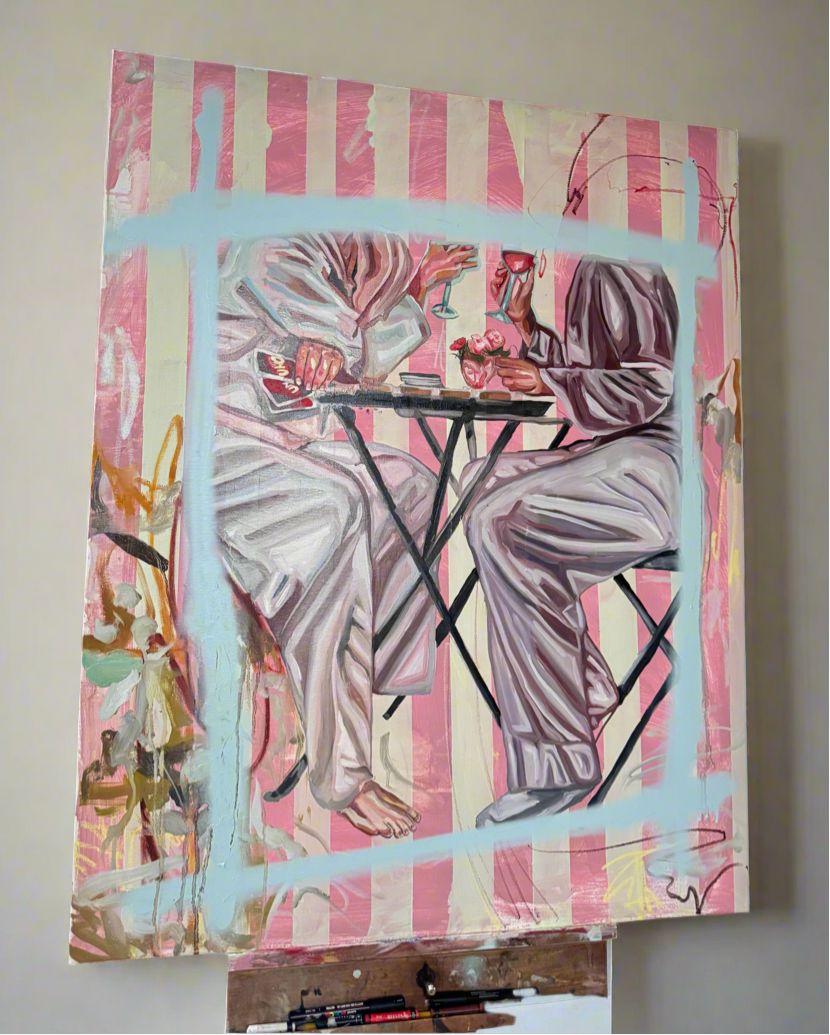 The painting speaks to the beauty of small, everyday moments in relationships, where love is found not in grand gestures, but in the quiet, personal rhythms of companionship.